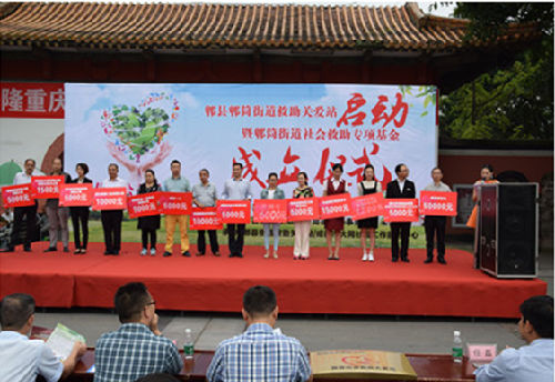 2016年9月29日上午,由郫县社会救助中心、郫县民政局、郫县慈善会和郫筒街道办事处主办,成都市大同社会工作服务中心郫筒街道救助关爱项目组承办的“传播公益理念·助力困境家庭”郫筒街道救助关爱站启动暨社会救助专项基金成立仪式在望丛祠广场举行。四川明智门业有限公司进行了捐赠,公司法人代表彭有志先生进行了讲话。
